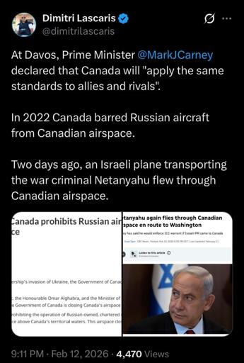 #MarkCarney declared that #Canada will “apply the same standards to allies and rivals”.In 2022 Canada barred #Russia n aircraft from Canadian airspace.